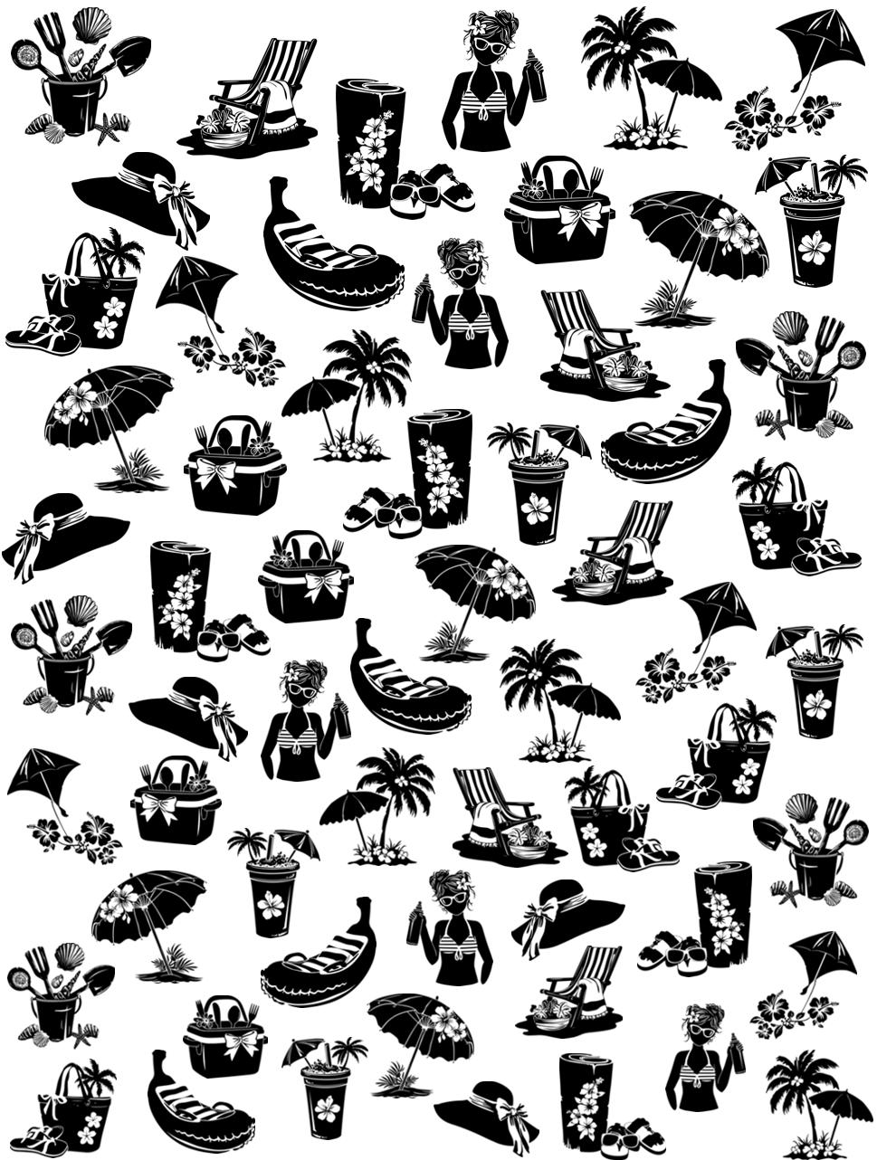 Summer water nail stickers, water slide stickers for nails, nail stickers for vacation, holidays, beach, sun, black