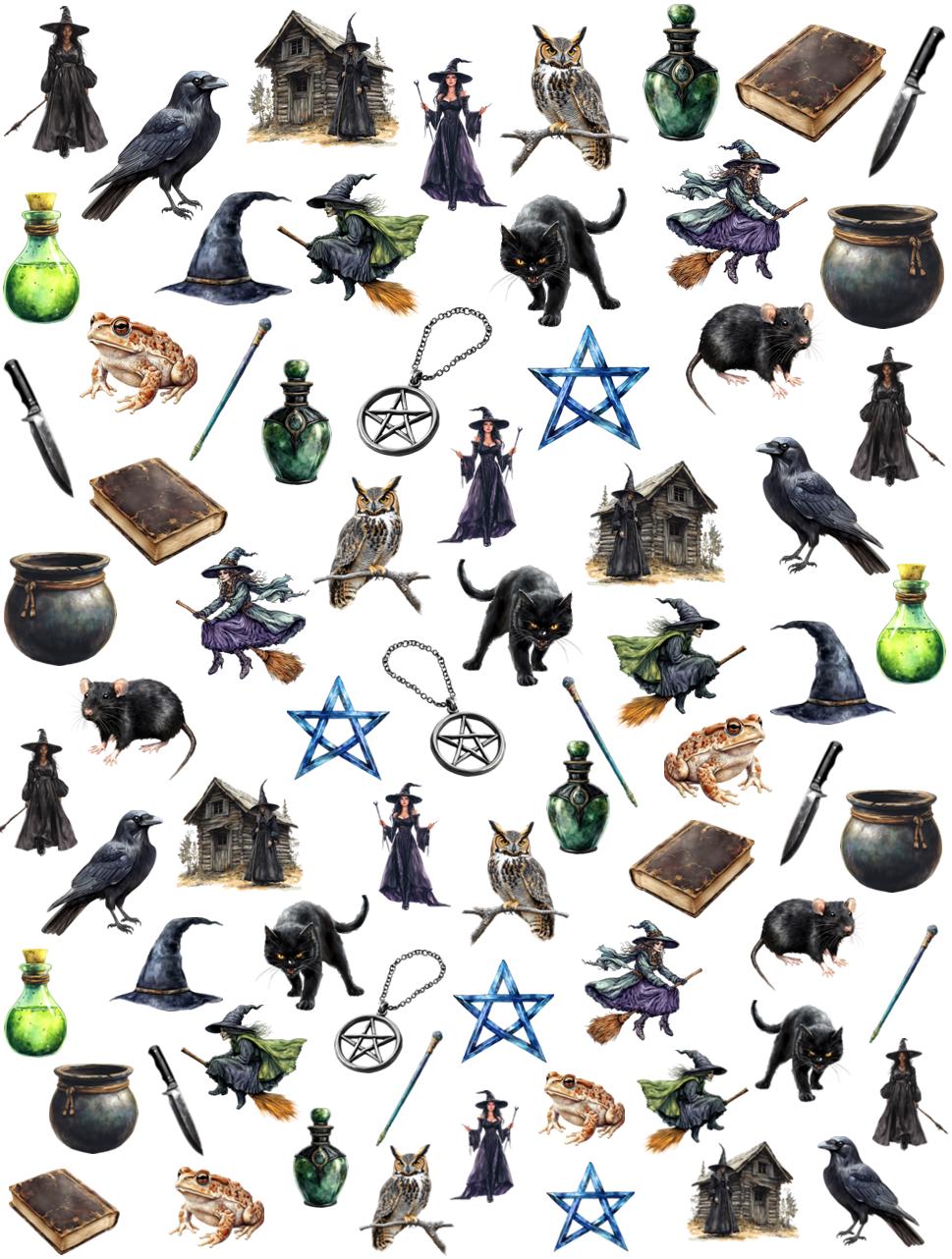 Witch's Water Nail Stickers, Water Slide Stickers for Nails, Halloween Nail Stickers, Witch's Cauldron, Toad, Owl on Branch