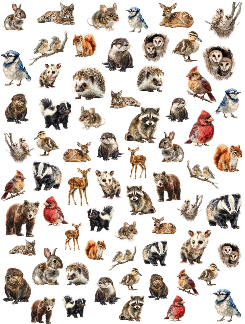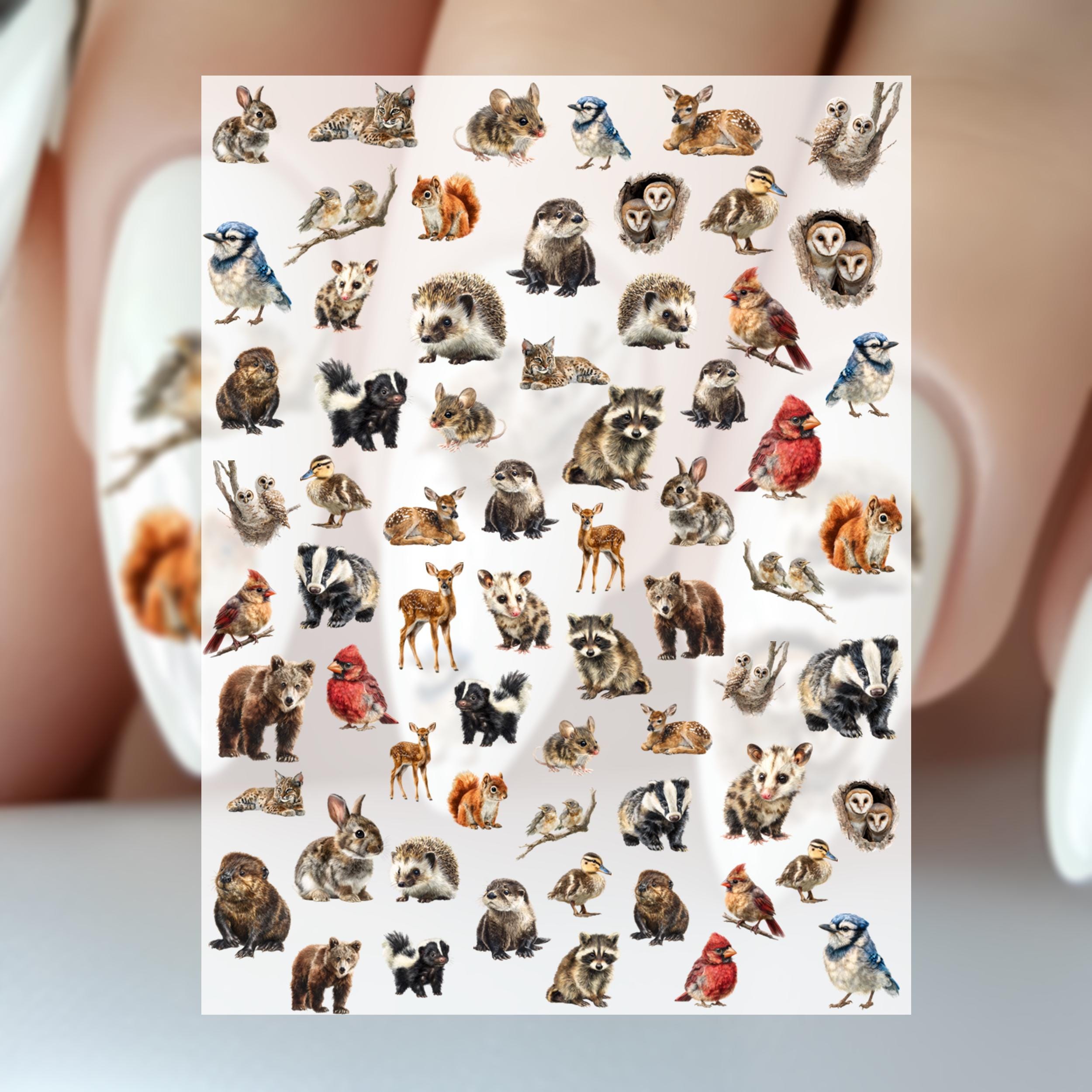 Cute Baby Woodland Animals Water Slide Nail Stickers, Woodland Animals, Hedgehog, Owl, Squirrel
